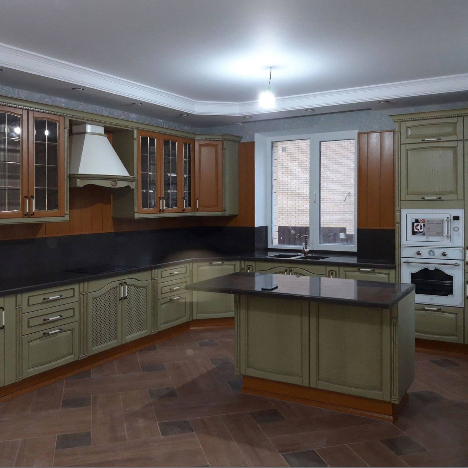 Отделка кухни оливкового цвета