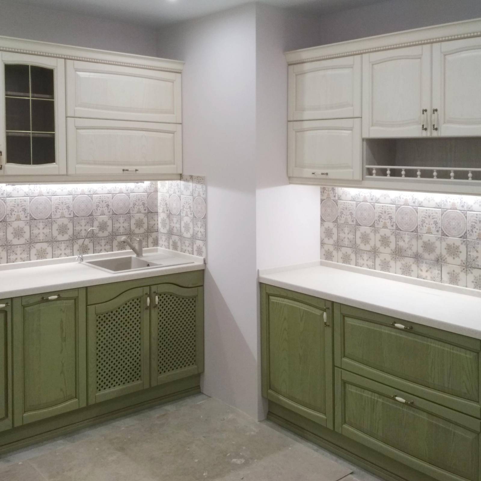 Отделка кухни оливкового цвета